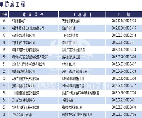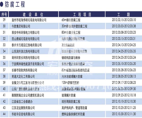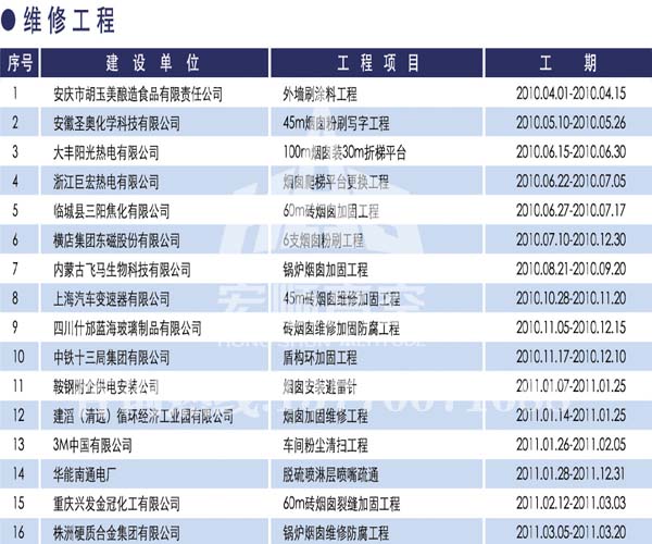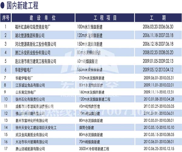 宏順建設(shè)工程有限公司是國家批準成立的專業(yè)高空作業(yè)企業(yè):承攬過(國內(nèi).國外)煙囪新建、煙囪防腐、磚煙囪新建、煙囪改造、煙囪維修、煙囪脫硫防腐、煙囪拆除加高、煙囪滑膜等高空作業(yè)工程。具有“不搭腳手架 、 不需要停產(chǎn)”施工特點。